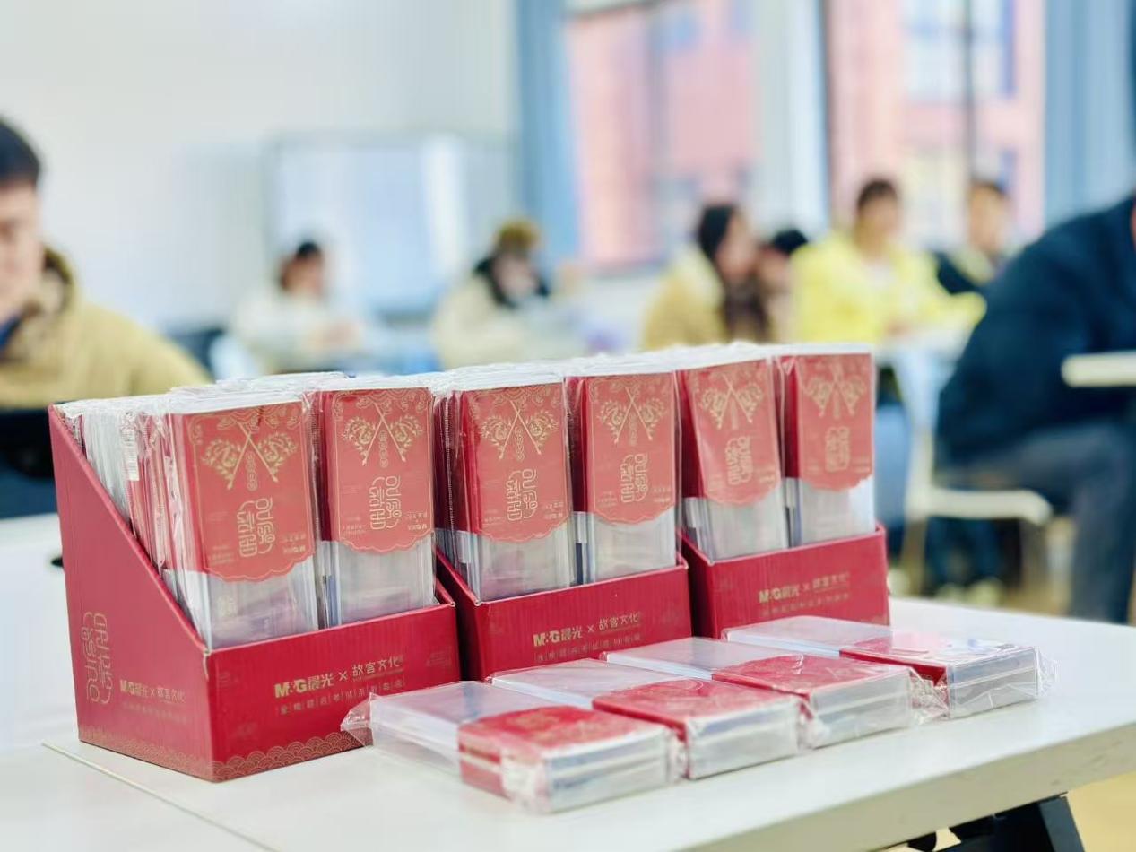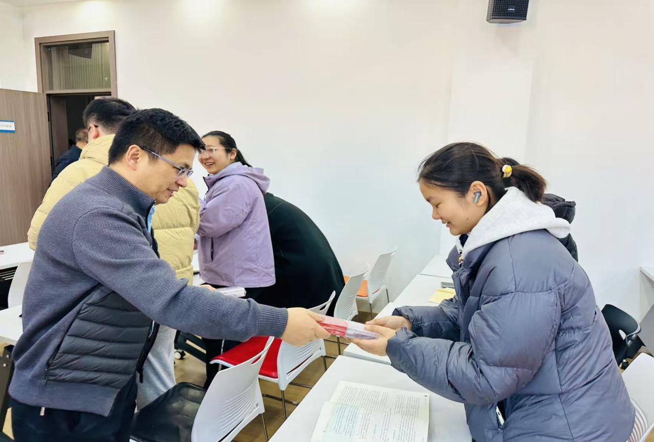 随后,学院领导为现场每一位考研学子都发放了精心准备的考研助力礼品。礼品袋内包含考研所需的涂卡笔、橡皮等文具,每一份都承载着学院对学子们的深切关怀与美好期许。
