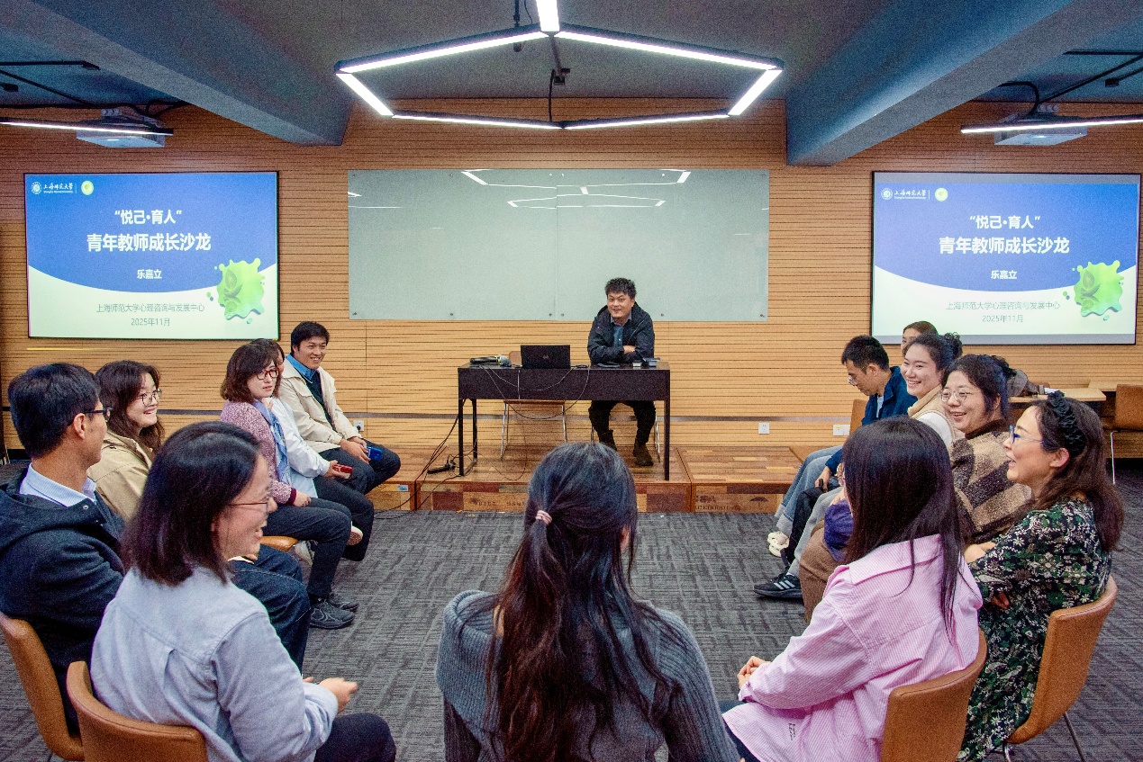 11月6日下午,“悦己·育人”青年教师成长沙龙在商学院D201会议室顺利举行。本次活动特邀上海师范大学心理咨询与发展中心副主任、资深心理专家乐嘉立老师,为商学院青年教师们带来了一场关于教师自我成长的精彩分享。沙龙由商学院青联会会长贾思雪主持。