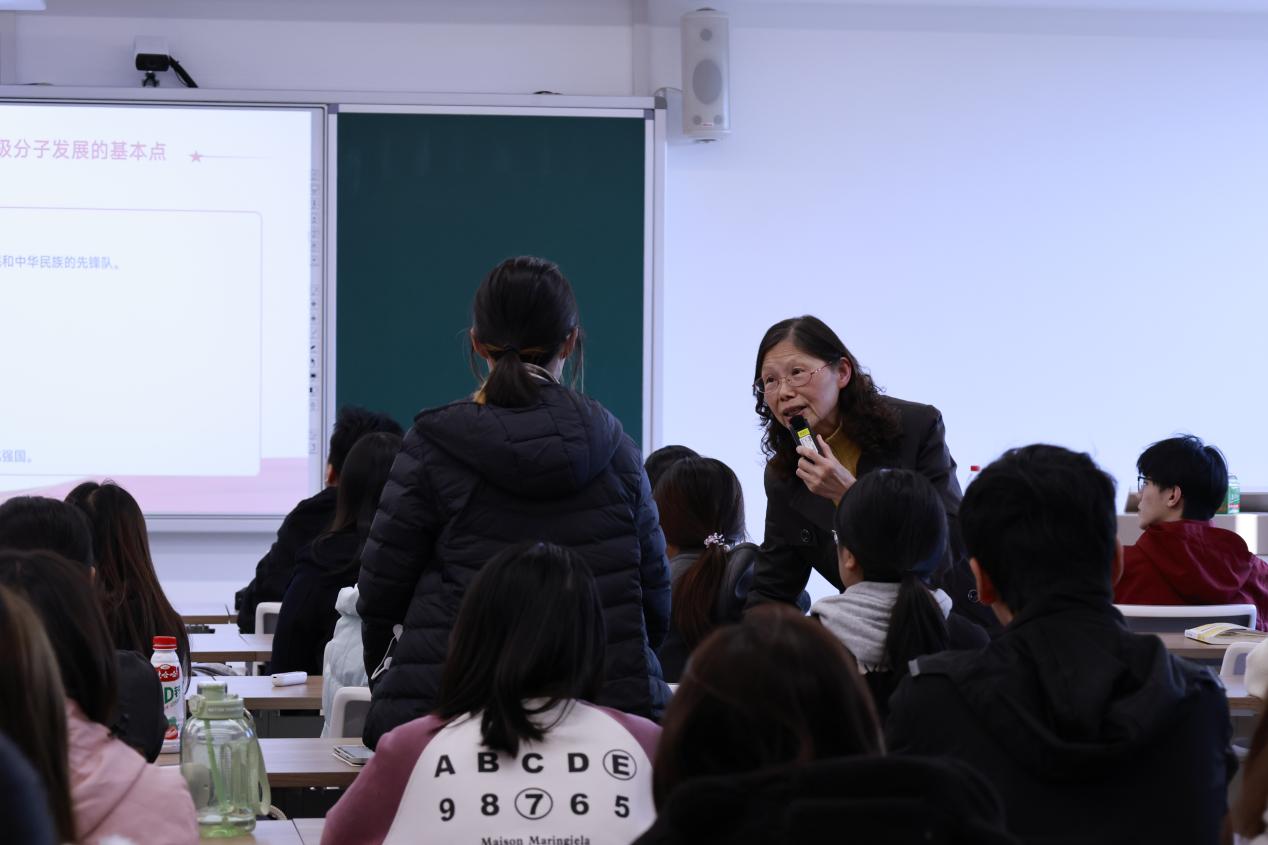 李薇辉老师结合自身半个世纪的党员经历和教学科研实践,从“精神谱系·与传统连接”“时代召唤·与时代同步”“知行合一·与发展并行”三个维度系统阐释了新时代大学生入党的深刻内涵。她指出,追求进步、加入中国共产党是中国一代代先进青年的精神追求和光荣传统。从朱德、钱学森等老一辈革命家与科学家,到当今时代楷模任正非,他们都以实际行动诠释了“把个人理想融入国家和民族事业”的崇高信念。