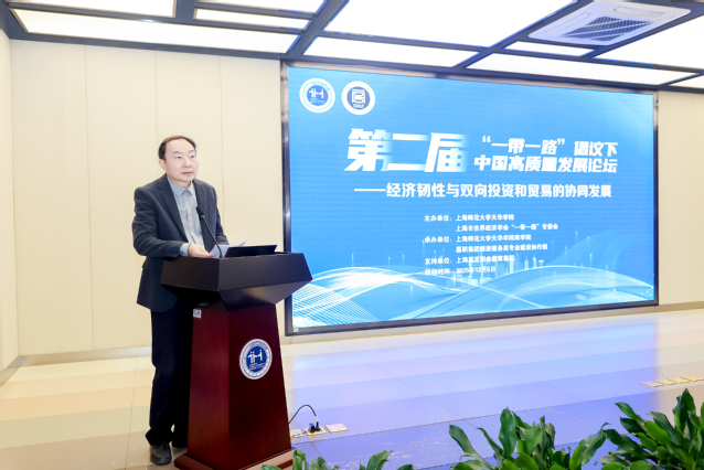 2025年12月5日,由上海师范大学天华学院与上海市世界经济学会一带一路泛区域发展与合作专委会联合主办的第九届“一带一路”与中国发展治理学术研讨会暨第二届“一带一路”倡议下中国高质量发展论坛在上海师范大学天华学院图书馆报告厅圆满落幕。本届论坛以“经济韧性与双向投资和贸易的协同发展”为主题,汇聚了来自政府、高校、研究机构及企业界的代表,围绕“十五五”发展展望、区域经贸合作、数字规则重构、企业出海实践等核心议题,展开了深入而富有建设性的研讨。