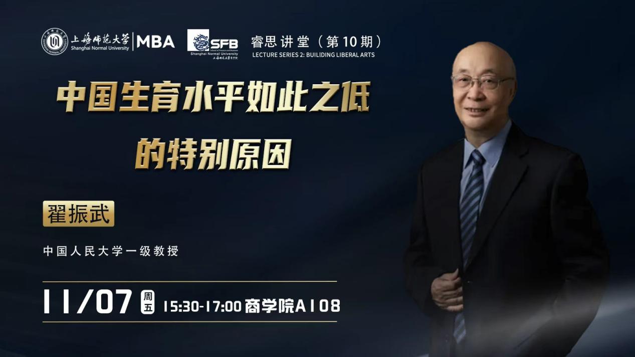 2025年11 月7 日下午,上海师范大学商学院“睿思讲堂” 系列讲座第10期在商学院A108教室开讲。本次讲座特邀中国人民大学一级教授、博士生导师、教育部人文社会科学重点研究基地中国人民大学人口与发展研究中心主任、《人口研究》杂志主编翟振武教授,以 “中国生育水平如此之低的特别原因” 为题,为现场师生带来一场兼具学术深度与现实关怀的精彩报告。讲座由上海师范大学商学院党委书记张春丽主持开场。张书记首先代表学院全体师生对翟教授的到来致以了最热情与诚挚的欢迎,高度评价并充分肯定了翟教授在中国人口与经济、人口与社会、老龄化等领域所取得的卓著成就与深远影响力。讲座中,翟振武教授首先揭示了中国生育率下降过程中“未发达先触底”的特殊现象。与发达国家相比,中国在人均GDP、城市化率和平均受教育年限等指标相对落后的情况下,生育率却率先降至超低水平。这一背离表明,在中国育龄人群的生育决策背后存在着超越常规社会经济解释的、具有中国特殊性的强劲抑制因素。接着,翟教授指出,在诸多因素中,照料困境构成了一个在特定历史与社会背景下形成的沉重压力。中国的婴幼儿照料责任经历了从集体福利时代的“去家庭化”到改革开放后责